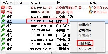 3、访客在被阻止之后,将无法发送消息;正在对话中的访客被阻止,其对话也将被强制关闭,请在线客服谨慎操作。